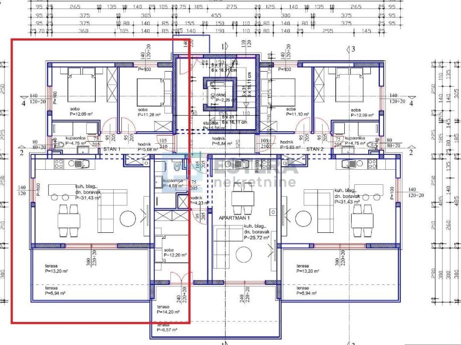 Sveukupna neto površina apartmana sa vrtom i pripadajućim parkirnim mjestom iznosi 90,27 m2.