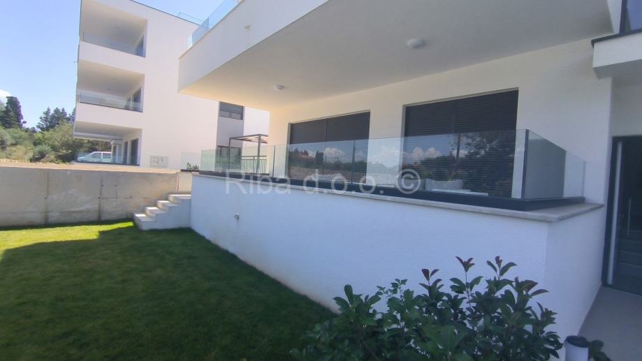 Dvije stambene zgrade, svaka sa po šest apartmana, parkinzima u garaži te zajedničkim bazenom, se nalaze na odličnoj lokaciji, tek 130m udaljene od plaže i mora. Zgrade imaju lift direktno iz garaže.
