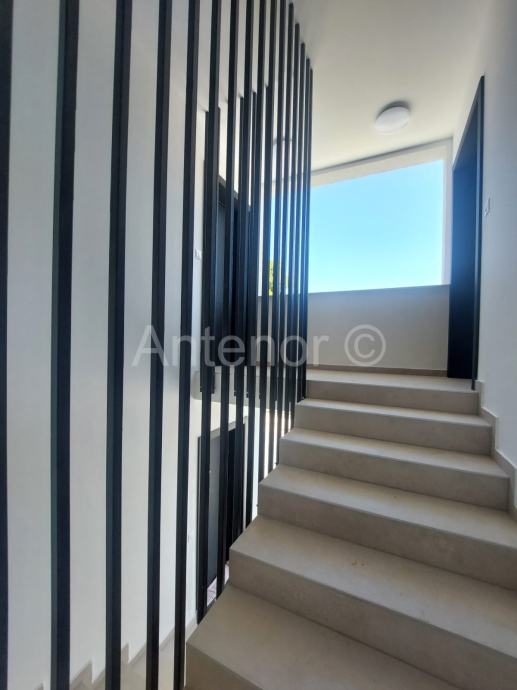 Stan se nalazi na prvom katu zgrade, a sastoji se od kuhinje, blagavaone, dnevnog boravka, kupaonice, dvije spavaće sobe i terase. Apartman će biti opremljen kuhinjom i kupaonicom. Tlocrtna površina stana je 46,73 m2. U kupaonici će biti postavljeno podno grijanje, dok će u dnevnom boravku i spavaćim sobama biti postavljeni klima uređaji. Također, biti će ugrađen i dimnjak pa postoji mogućnost postavljanja peći. Na pročelje zgrade biti će postavljen kamen travertino. Stanu pripadaju 2 parkirna mjesta. Useljenje je predviđeno u svibnju 2023.