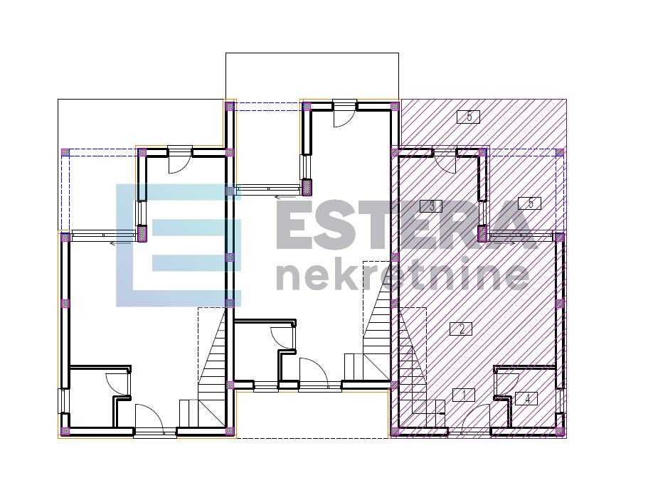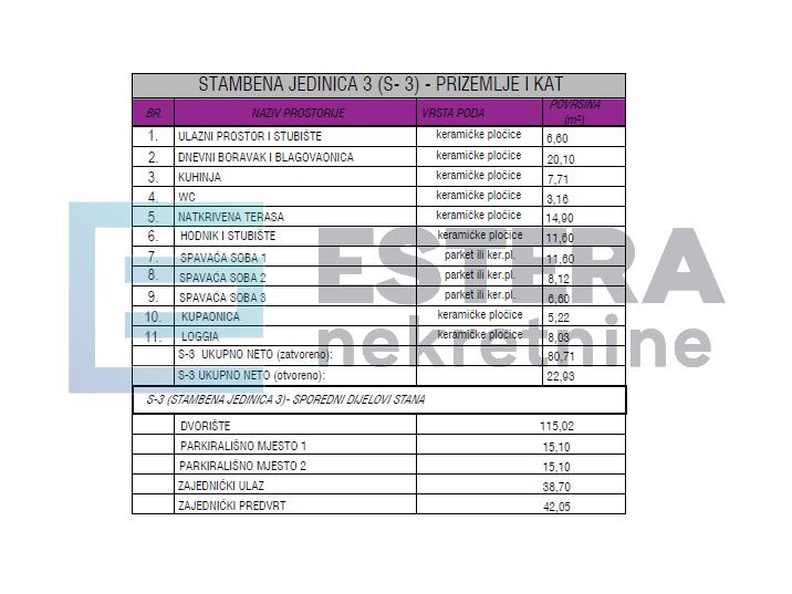 - Ukupna površina s pripacima (vrt, bazen, parking): 121,14 m2