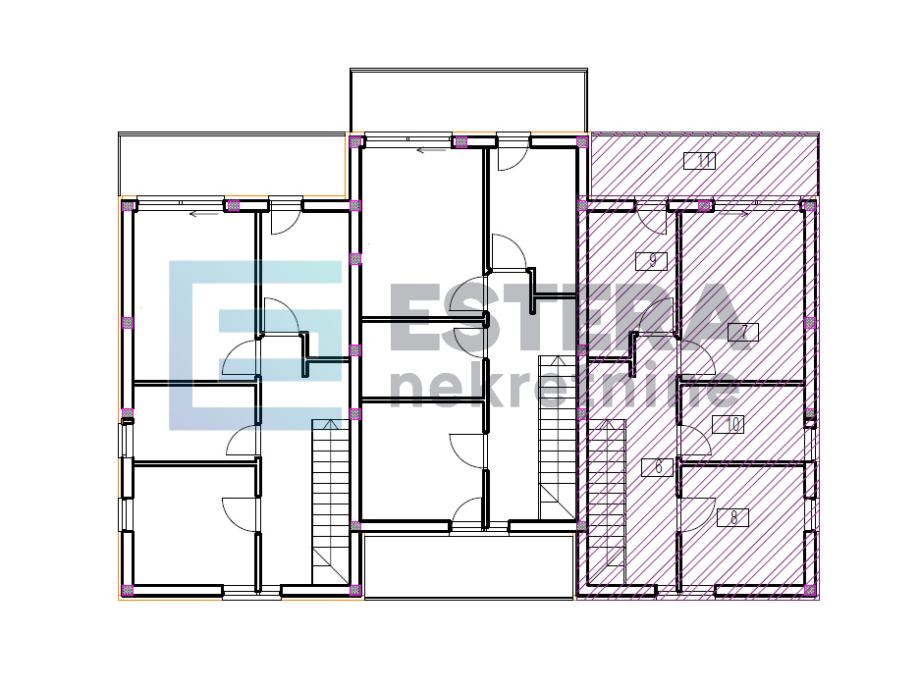 Prodaje se luksuzni dvoetažni apartman S3 u manjoj zgradi sa svega tri apartmana, smješten u mirnom dijelu mjesta Vrsi, udaljenom samo 600 m od plaže.