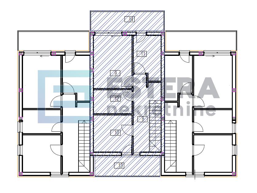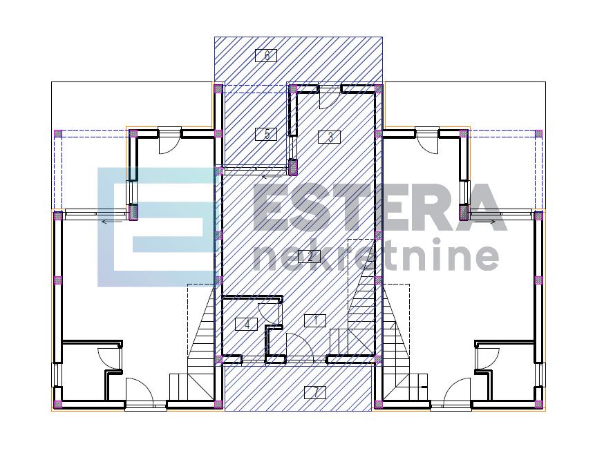 Prodaje se luksuzni dvoetažni apartman S2 u manjoj zgradi sa svega tri apartmana, smješten u mirnom dijelu mjesta Vrsi, udaljenom samo 600 m od plaže.