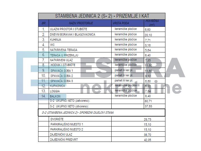 - Ukupna površina s pripacima (vrt, bazen, parking): 127,31 m2