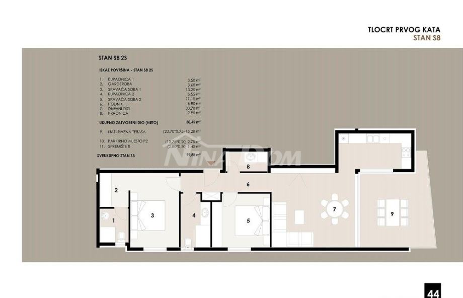 Apartmanu pripada parkirno mjesto P2 13.75 m2