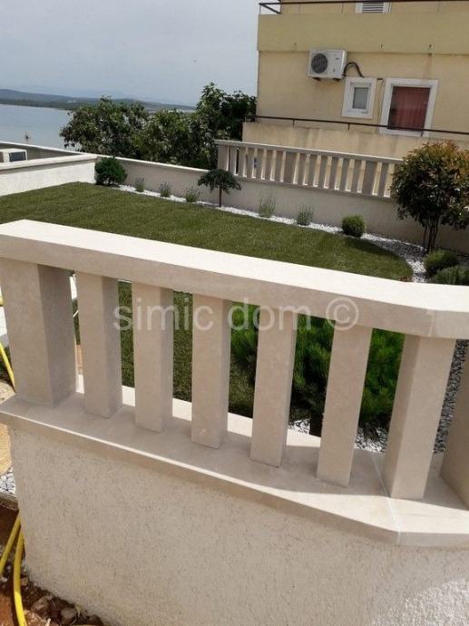 Posredujemo u prodaji apartmana u novogradnji na jednoj od najljepših lokacija u prvom redu do mora, na otoku Pašmanu. Apartman se nalazi na drugom katu manje zgrade te ima ukupnu podnu površinu od 135m2, odnosno 100,36m2 neto. Riječ je o velikom dvoetažnom apartmanu koji se na prvoj etaži sastoji od hodnika, kupaonice, predsoblja, dvije spavaće sobe sa balkonom, prostranog dnevnog dijela s kuhinjom te blagovaonicom sa izlazom na još jedan balkon. Na drugoj etaži se nalaze još dvije spavaće sobe, kupaonica, soba koja se može koristiti kao drugi dnevni boravak te terasa koje se pruža prekrasan pogled na more. Parking mjesta dostupna su po početnoj cijeni od 5.000 €. (13 m2 – 15 m2). Apartmani su dovršeni i spremni za useljenje. S obzirom na iznimnu lokaciju, riječ je o idealnoj investiciji u turističke namjene ili vlastiti miran odmor. Vlasništvo uredno.