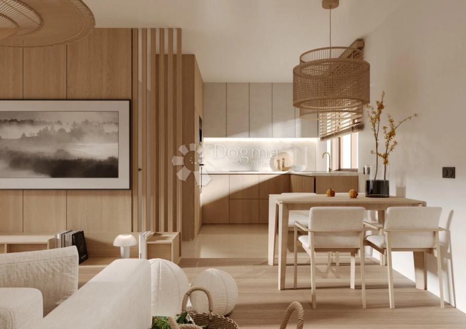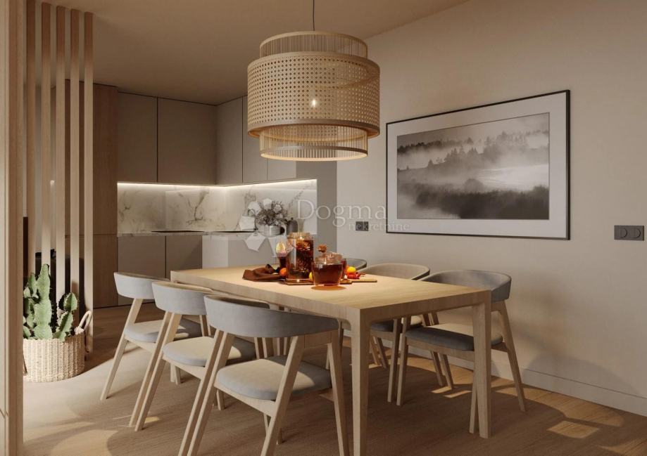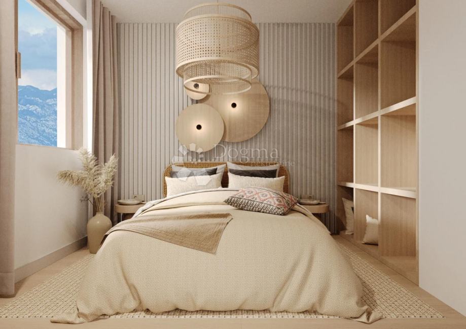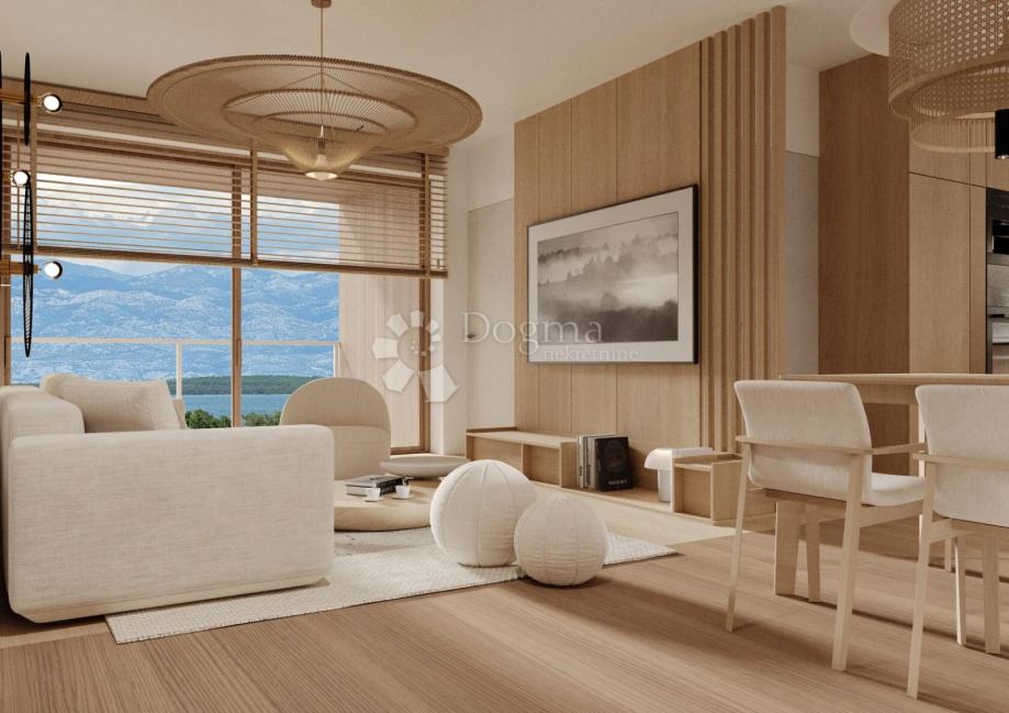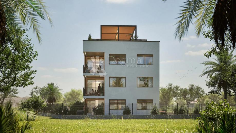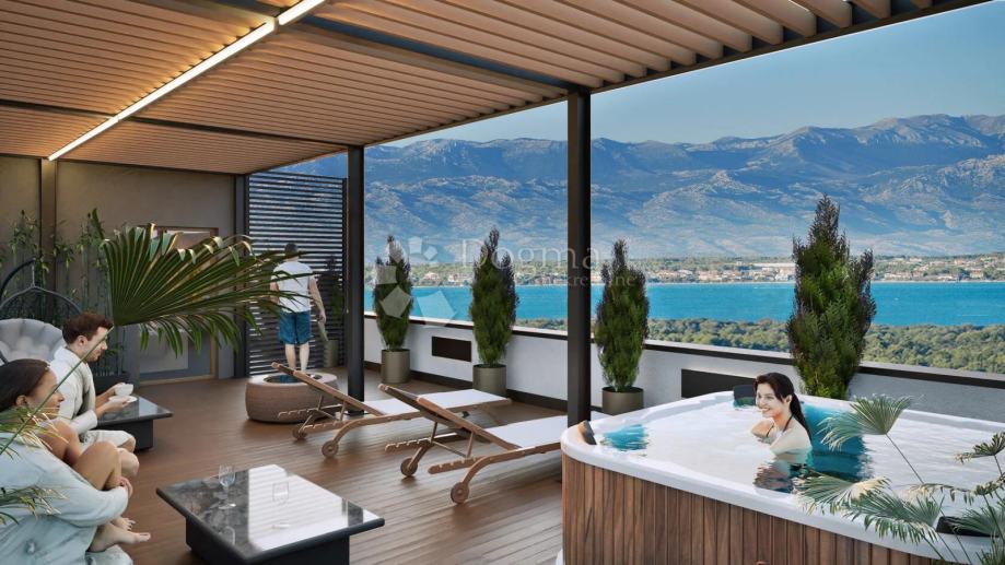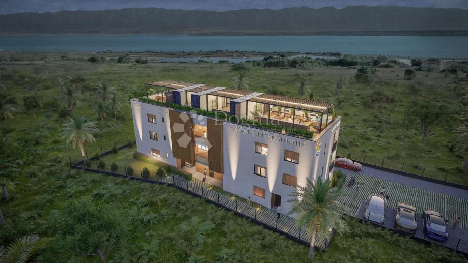 U sklopu modernog kompleksa Residence Adriatic u Ninu, na drugom katu nalazi se trosobni apartman ukupne obračunske površine 132,90 m². Sastoji se od prostranog dnevnog boravka s izlazom na veliku natkrivenu terasu, kuhinje s blagovaonicom, tri spavaće sobe, dvije kupaonice te hodnika i ulaznog prostora. Projekt donosi suvremenu arhitekturu, lift, visokokvalitetne materijale i iznimnu funkcionalnost. Završetak građevinskih radova predviđen je za travanj 2025., a kompletno uređenje interijera i okoliša do kraja godine. Stan je idealan za obitelj, luksuzno stanovanje ili turističku investiciju.
