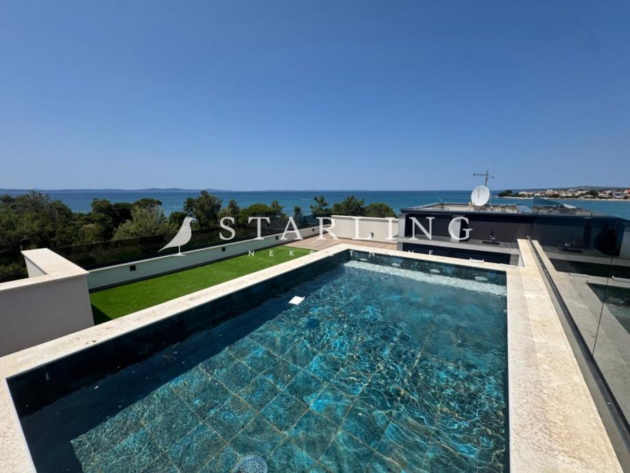 Na krovu zgrade se nalazi bazen koji pripada stanu.
