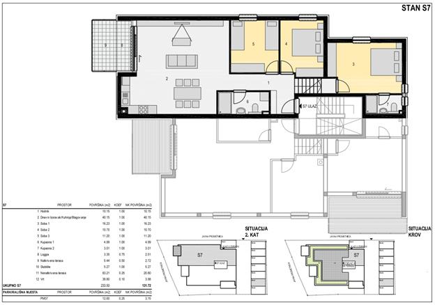 Stan S7 veličine 131,72 m2 nalazi se na 2. katu i oduševljava svojom prostranom terasom, savršenom za opuštanje, druženje ili uživanje u zalascima sunca.