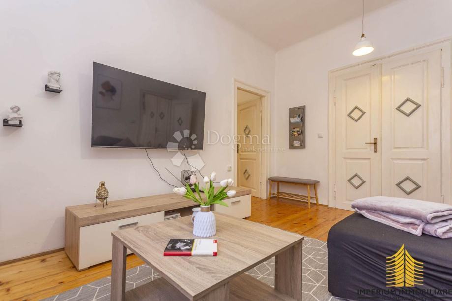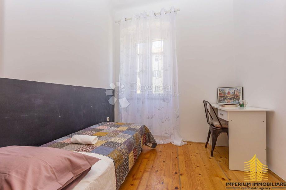 Brojni prozori pružaju obilje prirodnog svjetla, a stan ima i dvoja ulazna vrata, što omogućuje podjelu u dva manja stana.