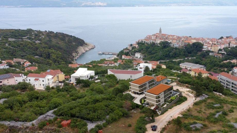 Prodaje se apartman vrhunske gradnje, kvalitetnih materijala i modernog dizajna na prvom katu stambene zgrade s ukupno tri stambene jedinice u predivnom, mirnom dijelu Vrbnika, na samo 700 m od mora.