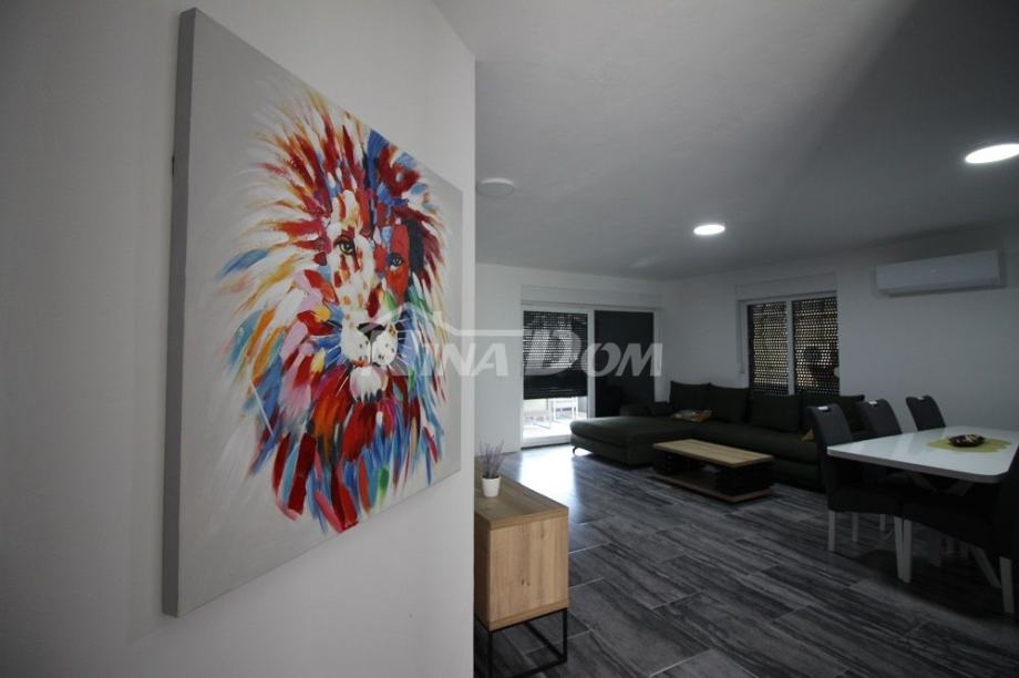 Apartmanu pripada krovna terasa 100 m2 s predivnim pogledom na more i Velebit i parkirno mjesto.