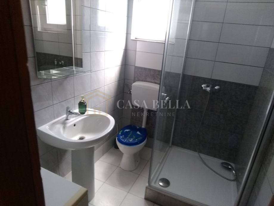 Apartman se sastoji od dnevnog boravka i kuhinje,ostave, 3 sobe + galerija, kupaone i wc-a, balkona i terase 10 m2 te dvorišta 90 m2 s 3 parkirna mjesta.