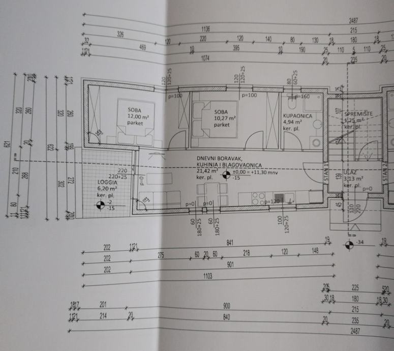 dnevni boravak s blagovaonicom i kuhinjom 21.42m2