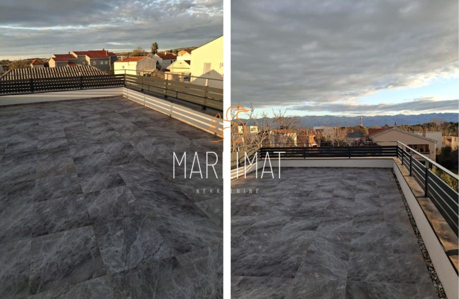 Apartman se nalazi na 1.katu stambene zgrade te je same stambene površine 52.96m2. Ima pripadajuću krovnu terasu veličine 55m2 koja je opločena i ima struju, vodu i kanalizaciju. Mogućnost postavljanja jacuzzija.