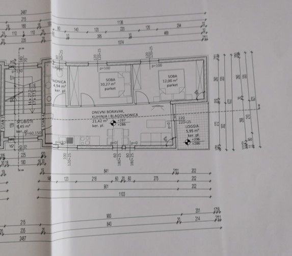 dnevni boravak s blagovaonicom i kuhinjom 21.42m2