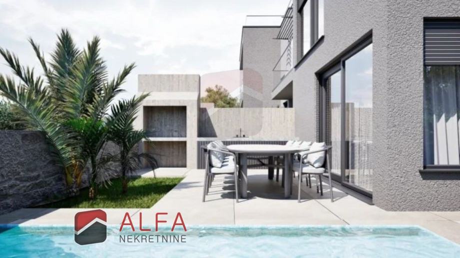Kuća se prostire kroz dvije etaže, ima svoje dvorište i bit će etažirana kao stan S1. Površina unutarnjeg prostora na obje etaže je 80 m2 + terasa 17 m2 + dvorište 70 m2 + dva parkirna mjesta ukupno 30 m2.