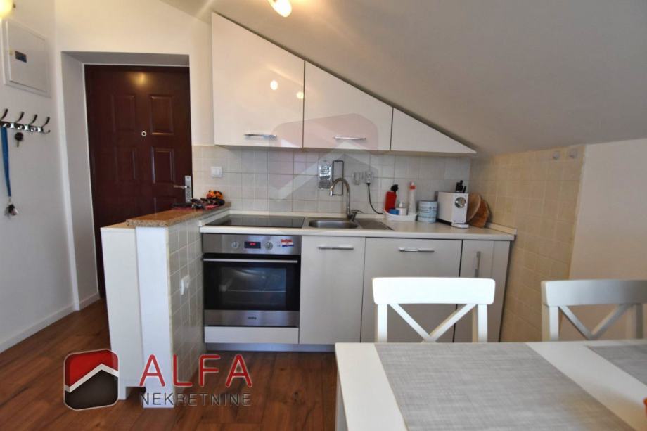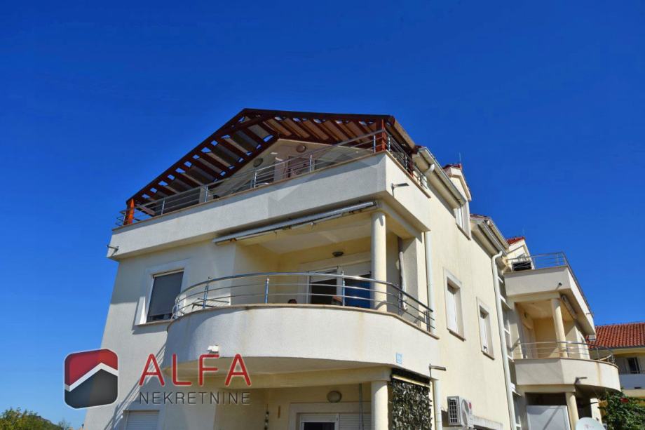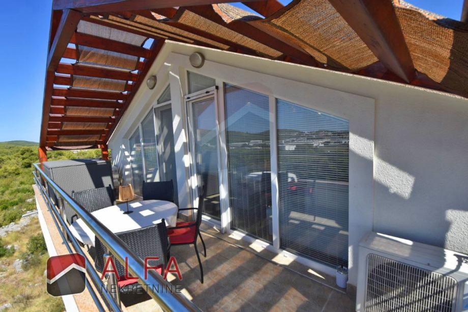 Vodice, na prodaju je stan na drugom katu (visokom potkrovlju) manje stambene zgrade izgrađene 2010. godine, smještene u mirnom dijelu mjesta, na udaljenosti od 2000 metara od mora.