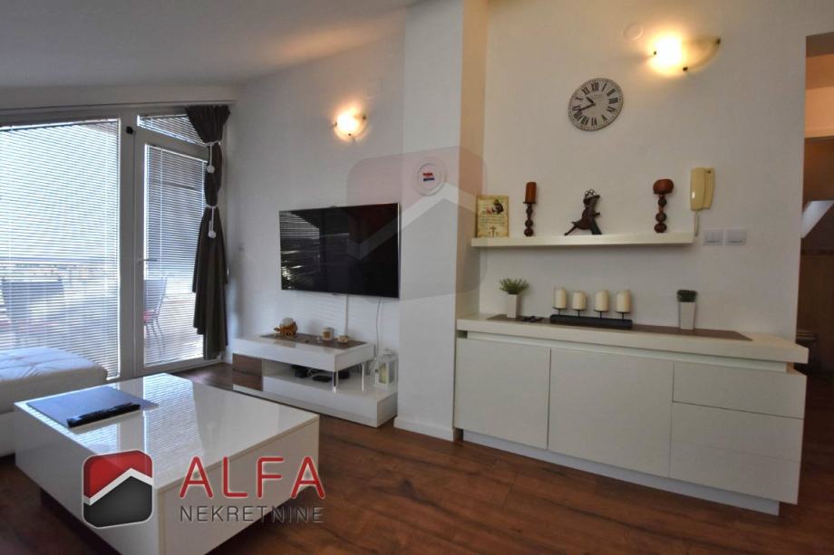 Stan je klimatiziran, potpuno opremljen i prodaje se s cjelokupnim namještajem, što budućem vlasniku omogućava useljenje bez dodatnih ulaganja.
