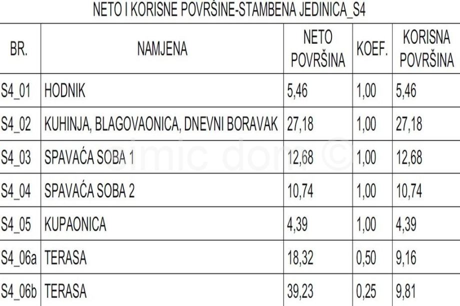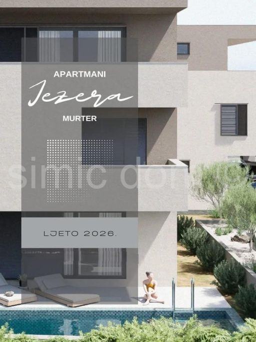 Na prodaju su apartmani smješteni na odličnoj lokaciji, u mirnoj ulici u predivnom malom mjestu Jezera na otoku Murteru. Zgradu gradi renomirana firma s dugogodišnjim iskustvom, stoga za kupce nema poreza na promet nekretnina. Zgrada je udaljena svega 100m od svih sadržaja, dućana, kafića i restorana u Jezerima, a do plaže je udaljena 5 minuta hoda. Apartman S4 smješten je na drugom katu zgrade te ima ukupnu površinu od 85,66 m2. Sastoji se od hodnika, predsoblja, kupaonice, dvije spavaće sobe, dnevnog boravka, kuhinje i blagovaonice otvorenog koncepta iz koje se izlazi na prostranu djelomično natkrivenu terasu s predivnim pogledom na more i Jezera, idealnom za uživanje u mirnim ljetnim večerima. Apartmanu pripada i vanjsko parkirno mjesto uračunato u cijenu. Apartmani se prodaju po principu „ključ u ruke“ s opremljenim kupaonicama, podnim grijanjem, kvalitetnom PVC vanjskom stolarijom, komarnicima i sl. U ovoj fazi kupac može u dogovoru s investitorom birati materijale. Mogućnost plaćanja kreditom. Očekivani završetak je ljeto 2026. godine.