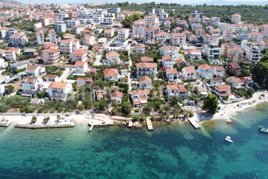 Na prodaju je odličan apartman smješten u manjoj zgradi, u mirnoj ulici, samo 60m od šljunčane plaže na Čiovu. Apartman se nalazi u prizemlju zgrade, jugozapadne je orijentacije i ima ukupnu podnu površinu 62,45 m2, od čega je 51 m2 unutarnje površine. Velika dodatna prednost je i to što apartmanu pripada garažno mjesto te vrt od oko 50m2 , sve uračunato u cijenu. Apartman se sastoji od hodnika, dvije spavaće sobe , kupaonice, te prostrane kuhinje sa blagovaonicom i dnevnim dijelom koji ima izlaz na terasu. Zgrada će biti izgrađena i opremljena prema visokim standardima; vanjska stolarija s komarnicima, protuprovalna i protupožarna ulazna vrata, rolete s električnim podizačima, podno grijanje, moderne kupaonske sanitarije. Očekivano useljenje je kraj 2026. godine. Ova top lokacija par koraka od plaže i svih sadržaja, garantira vrhunski odmor čime će vrijednost ove nekretnine ubuduće samo rasti.
