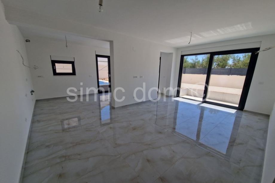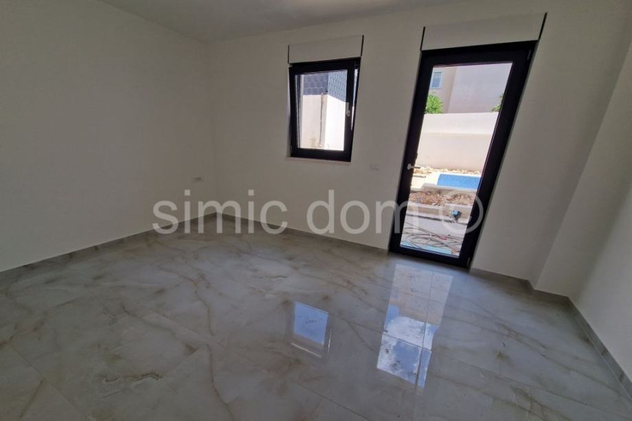 Na prodaju je apartman u novoj zgradi izrazito visoke kvalitete i opremljenosti i na odličnoj lokaciji svega 160m od plaže. Apartman S1 nalazi se u prizemlju i jugozapadne je orijentacije. Apartman ima ukupnu neto površinu od 89 m2 i sastoji se od hodnika, dvije kupaonice, dvije spavaće sobe, kuhinje otvorenog koncepta s blagovaonicom i dnevnim boravkom t vrta sa vlastitim bazenom . Apartmanu također pripada i garažno mjesto uračunato u cijenu. Apartmani su opremljeni vrhunskom stolarijom te keramikom i spremni su za useljenje kroz ljeto 2025. godine. Lokacija zgrade odlična je zakupce koji se žele baviti najmom, ali i za one koji žele uživati u vlastitoj nekretnini, pogledu i blizini plaže.