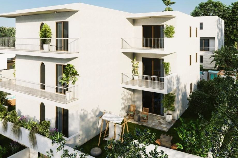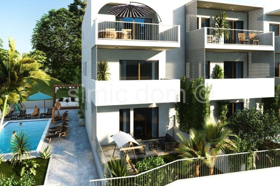 Na prodaju je odličan mali apartman smješten na sjevernom dijelu Čiova, svega 100m od plaže, restorana i kafića. Apartman se nalazi u prizemlju manje zgrade koja će biti idealan spoj dalmatinskog ugođaja i modernog dizajna. Radi se o apartmanu ukupne neto površine 61,56 m2 s pripatcima. Unutarnja površina apartmana je 42,22 m2 te ima još približno 15 m2 terase i 120 m2 vrta. Apartman se sastoji od dnevnog dijela u sklopu kojeg je kuhinja, spavaća soba i kupaonica. Pripada mu i garažno mjesto uključeno u cijenu. Vlasnici imaju na korištenje zajednički bazen. Apartman se prodaje po principu ključ u ruke, s opremljenom kupaonicom, podnim grijanjem u kupaonici, unutarnjom stolarijom, ugrađenim klima uređajem, PVC vanjskom stolarijom, troslojnom kliznom stijenom. Očekivano završetak radova je kraj 2026.godine i kupac ima mogućnost biranja pločica i materijala, kao i mogućnost dodatnog postavljanja podnog grijanja u ostatku apartmana u dogovoru sa investitorom. Budući da se zgrada nalazi u neposrednoj blizini svih sadržaja, a opet u vrlo mirnoj ulici, ova odlična nekretnina pružiti će kupcima idealni spoj u šarmantnom malom apartmanu u novogradnji.
