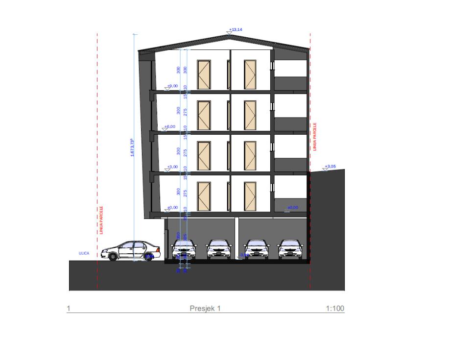 Opis zgrade - 4 etaže sa 16 apartmana i garaža: