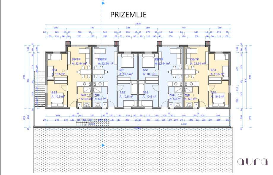 - suteren 8 garažnih + 8 parking mjesta po 15m2
