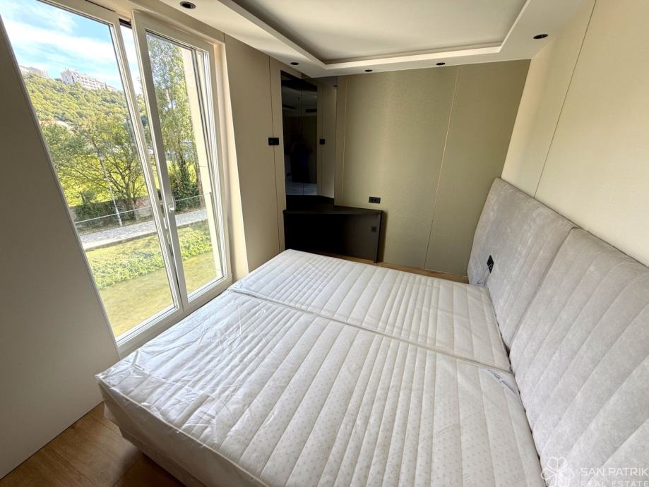 Interijeri su uređeni s posebnom pažnjom: kupaonice s kerok namještajem otpornim na vodu i udarce, keramika velikog formata, mat bijele sanitarije sa zlatnim detaljima, indirektna rasvjeta, dizajnerska unutarnja vrata i protuprovalna Diere ulazna vrata. Apartmani su opremljeni pametnim sustavom upravljanja putem aplikacije, a cijeli objekt je pod videonadzorom, što podiže sigurnost i komfor.