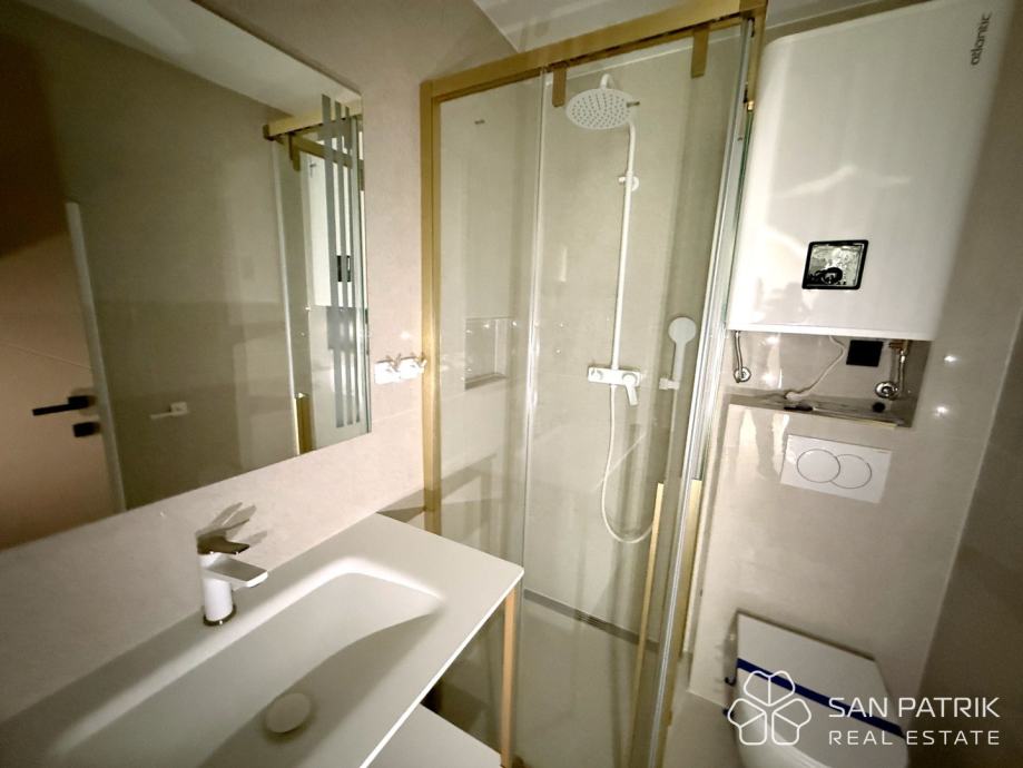 Interijeri su uređeni s posebnom pažnjom: kupaonice s kerok namještajem otpornim na vodu i udarce, keramika velikog formata, mat bijele sanitarije sa zlatnim detaljima, indirektna rasvjeta, dizajnerska unutarnja vrata i protuprovalna Diere ulazna vrata. Apartmani su opremljeni pametnim sustavom upravljanja putem aplikacije, a cijeli objekt je pod videonadzorom, što podiže sigurnost i komfor.