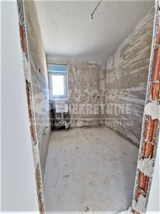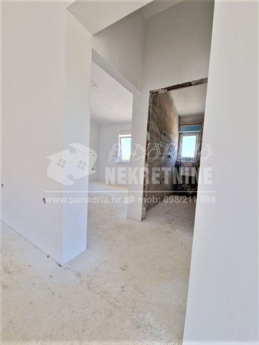 Apartman se nalazi na prvom katu stambene zgrade s četiri stambene jedinice, površine je 70 m2 a sastoji se od kuhinje s blagovaonicom i dnevnim boravkom, ostave,predprostora, kupaonice, dvije spavaće sobe te natkrivene terase te pripadajućeg parkirnog mjesta.