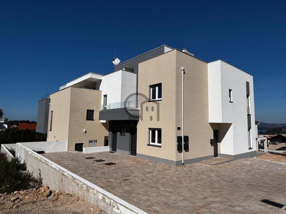 Novogradnja s pogledom na more na Murteru, na vrlo mirnoj lokaciji ( od plaže Slanica udaljenost 550 m). Planirano useljenje je krajem 2023, početkom 2024 godine. U zgradi će se nalaziti ukupno 5 odvojenih jedinica ( PP1 i S1,S2,S3,S4). Stanovi su u pretprodaji na rubu građevinske zone. Svaki stan imat će podno grijanje u kupaonici, a postoji mogućnost postavljanja podnog grijanja u cijelom stanu. Kvalitetna aluminijska stolarija sa električnim roletama.Svakom stanu pripada i jedno vanjsko parkirno mjesto.Slobodni apartmani: PP1 – 186.432,00 €- ukupna kvadratura za obračun: 52,01 m2 (uključujući terasu, parking i dvorište od 66 m2)S1 – 208.824,00 € - ukupna kvadratura za obračun: 63,08 m2 (uključujući odvojeni ulaz i samostalno stubište,balkon, krovnu terasu, jacuzzi i kamin na krovnoj terasi, i parking) - PRODANOS2 – 354.600,00 €- ukupna kvadratura za obračun: 102 m2 (uključujući natkrivenu terasu u prizemlju, balkon,krovnu terasu sa kaminom i jacuzzijem, parking, dvorište 84 m2 te), mogućnost ugradnje bazena od 19,05 m2 uz doplatu-PDONANOS3 – 426.605,00 € - ukupna kvadratura za obračun: 129,56 m2 (uključujući natkrivenu terasu u prizemlju, balkon, krovnu terasu sa ostavom, kaminom i jacuzzijem, parking, dvorište 260 m2 te bazen od 32 m2)-PRODANOS4 – 335.600 ,00 € - ukupna kvadratura za obračun: 103,10 m2 (uključujući natkrivenu terasu u prizemlju, balkon,krovnu terasu sa ostavom, kaminom i jacuzzijem, parking, dvorište 70 m2)-PRODANO
