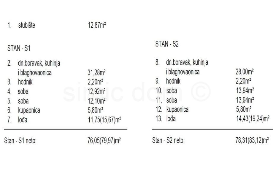 Na prodaju su apartmani u novogradnji u prelijepom Primoštenu. Apartmani S1 i S2 nalaze se u prizemlju zgrade. S1 ima površinu 76m2, dok S2 ima površinu od 78,31m2. Sličnog su rasporeda i oba se sastoje od dvije spavaće sobe, kupaonice te kuhinje otvorenog koncepta s blagovaonicom i dnevnim boravkom koji ima izlaz na prelijepu terasu s pogledom. Svi apartmani će biti opremljeni interfonom, protuprovalnim vratima, klimom u svim sobama, stolarijom vrhunske kvalitete, uz potpuno opremljene kupaonice. Apartmanima pripada i vanjsko parkirno mjesto uključeno u cijenu. Zgrada je udaljena od centra mjesta oko 600m, a do najbliže šljunčane plaže ima oko 400m. Završetak radova očekuje se u jesen 2026. godine. Ovi odlični apartmani s vrhunskim pogledom odlična su investicija u smislu nekretnine za odmor, ali i za turistički najam. Cijena apartmana S1 je 228.150€, dok je S2 cijene 234.930€.
