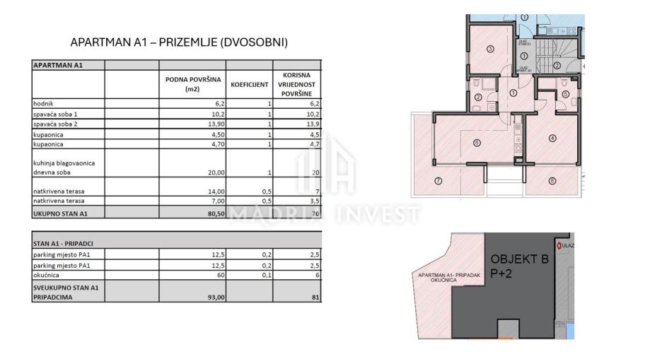 Apartman oznake A1 smješten je na visokom prizemlju.