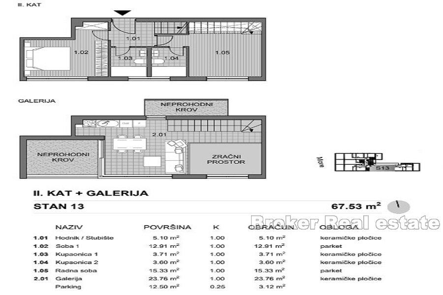 – Apartman s13 – dvosobni 2 kat+ galerija, 67,53m2 – 375 000 €