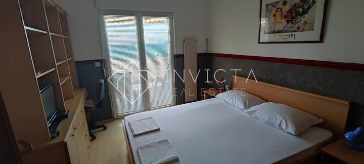 Ovaj apartman, adaptiran 2023. godine, nudi savršenu kombinaciju modernog dizajna i ugodnog životnog prostora. S dvije spavaće sobe i velikom kvadraturom, stan je idealan za obitelj ili parove koji cijene prostor i udobnost. Stan je orijentiran prema zapadu i jugozapadu, omogućujući obilje prirodne svjetlosti i pružajući prekrasan pogled na more.