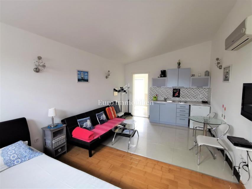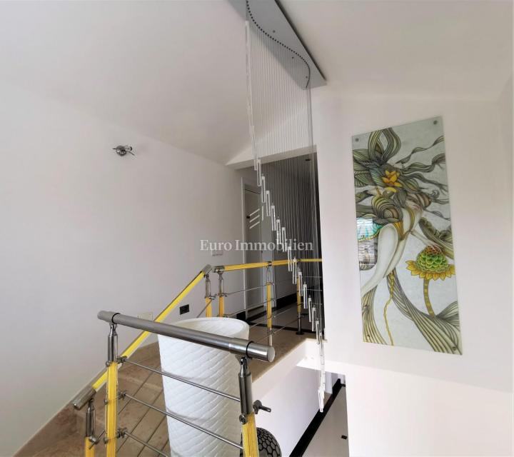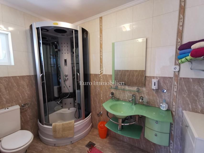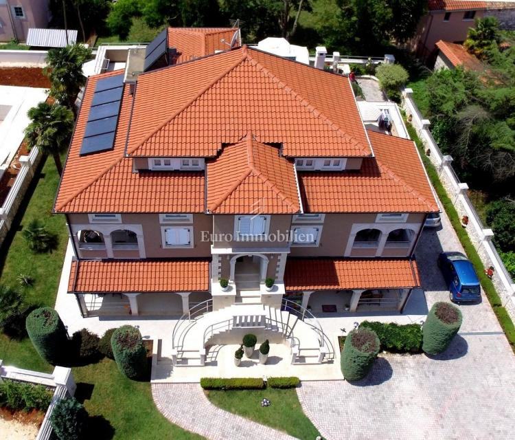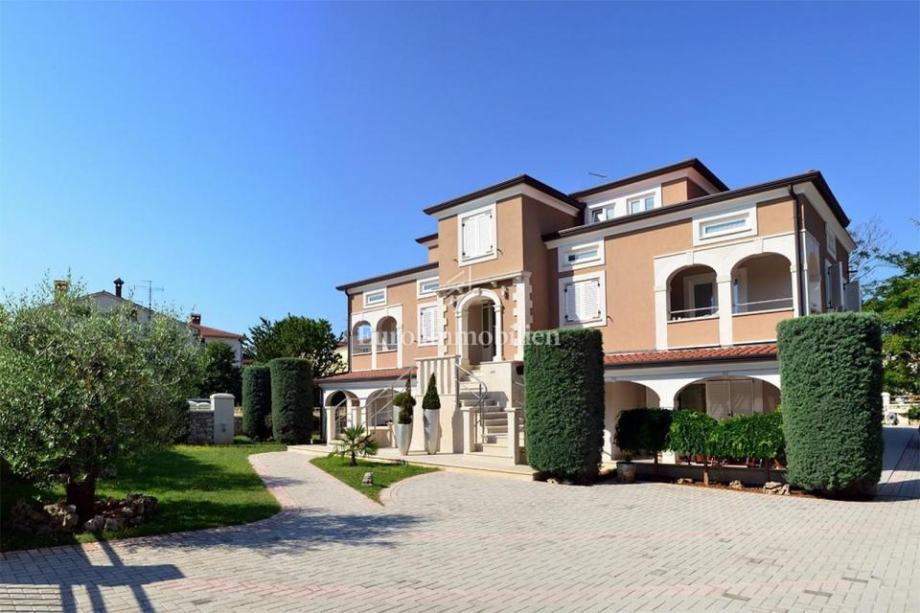 Apartmanska kuća nalazi se u Funtani u mirnom susjedstvu svega 500 m od mora. Kuća stambene površine 534,21 m2 izgrađena je 2014 g. na parceli od 1126 m2. Sastoji se od prizemlja, prvog kata i drugog kata. Kuća ima odličnu popunjenost tokom cijele godine te je odlična investicija za turistički najam. Ukupno ima 7 stambenih jedinica + 3 suita koji su opremljeni vrhunskom opremom. Na prostranoj i lijepo uređenoj okućnici nalazi se konoba sa kaminom, te bazen na zapadnoj strani kuće ispred natkrivene terase od 24 m2. Ispred kuće je veliki prostor za parking gostiju (za 10 vozila). Parcela je ograđena kamenim zidom s kamenim stupovima te budućim vlasnicima pruža intimu. Grijanje je predviđeno putem klima ili na struju. Kuća ima solarni sistem za grijanje tople vode.