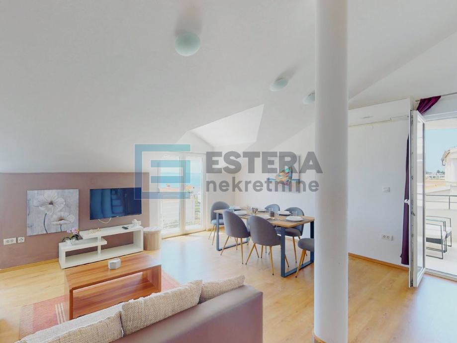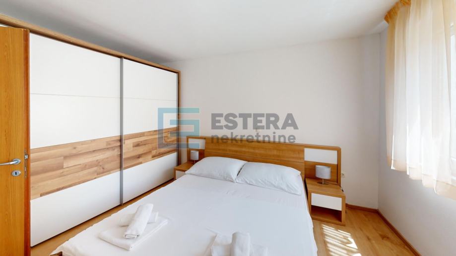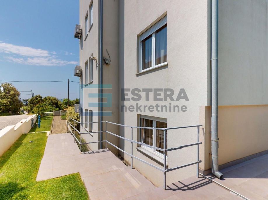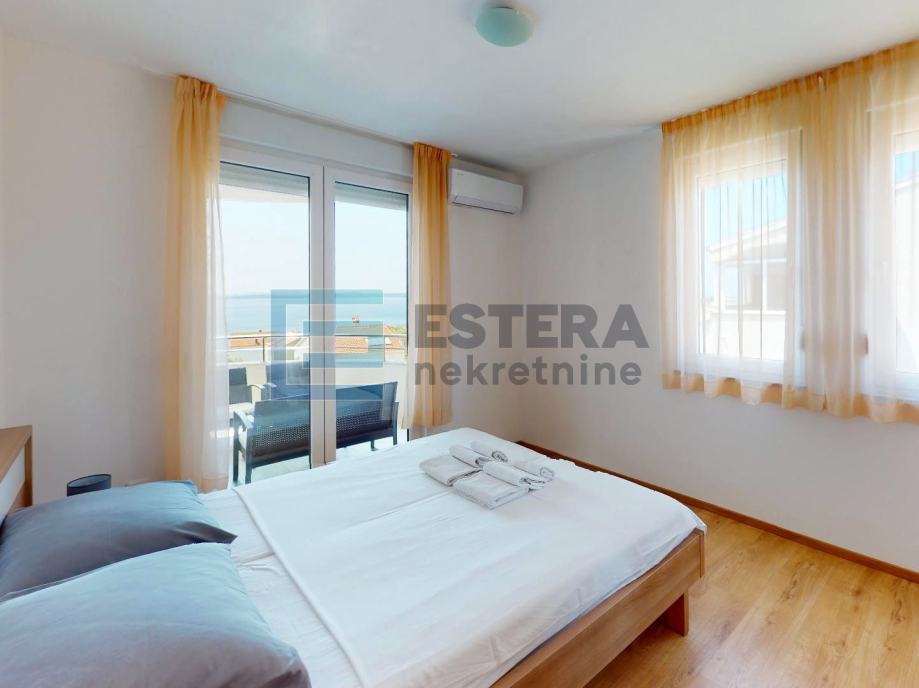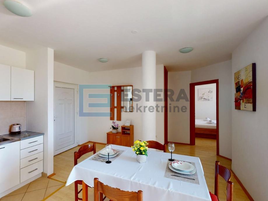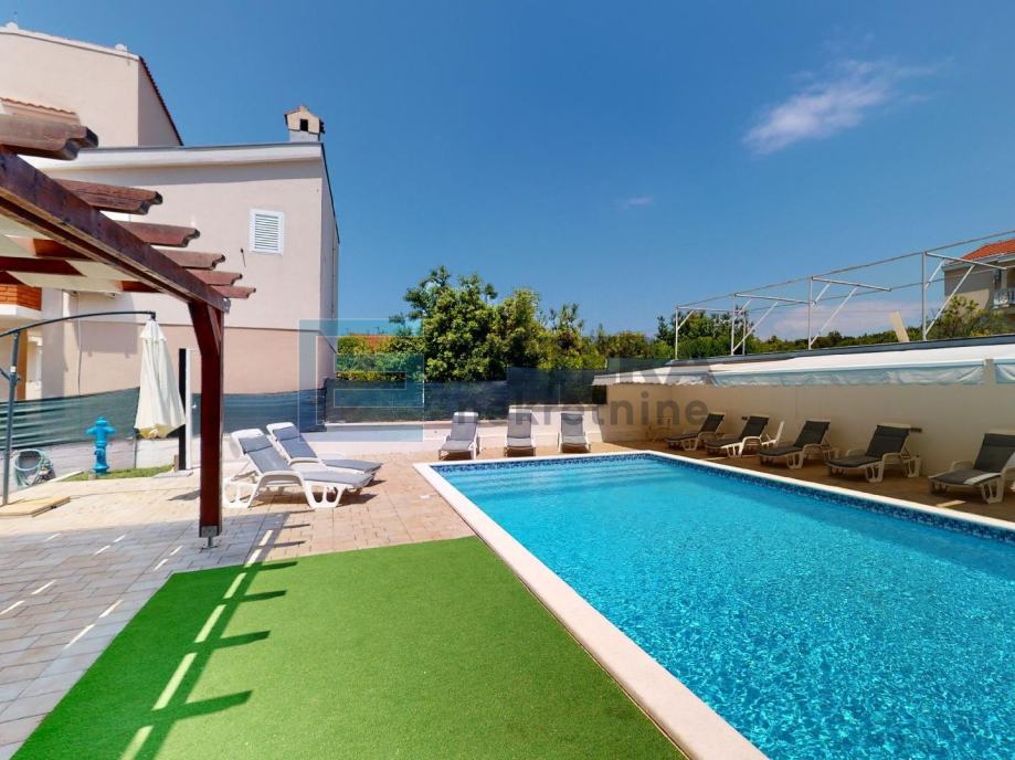 PRODAJE se apartmanska kuća (kuća s 10 apartmana) s dodatnim sadržajima (veliki bazen, sjenica, igraonica za djecu...itd). Kuća je u funkciji turističkog iznajmljivanja i donosi značajan prihod na godišnjem nivou. Sastoji se od 10 ETAŽIRANIH stambenih jedinica izgrađenih na zasebnoj zemljišnoj čestici i popratnih sadržaja (bazen, parkirna mjesta...) formiranih na drugoj zemljišnoj čestici (obje se u prodaji i čine cjelinu). Apartmani su prostrani i bogato opremljeni sa svim potrebnim za ugodan boravak. Iz svih apartmana (osim dva u prizemlju) je nesmetan pogled na more, koje se nalazi svega 120 metara (ne samo more nego i prekrasna plaža). Apartmani u prizemlju imaji velike prostrane terase i idealni su za obitelj s djecom.