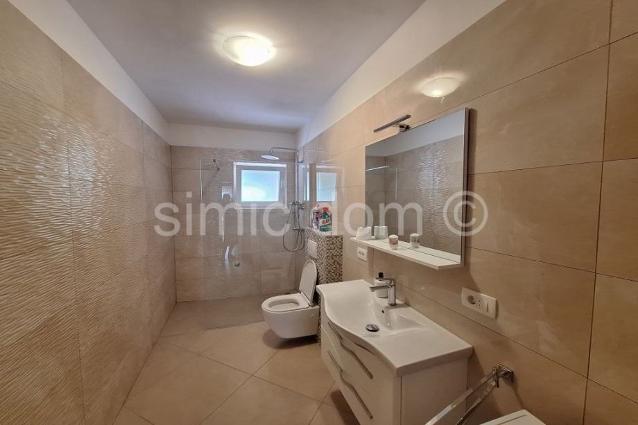 Posredujemo u prodaji izvrsne, vrlo prostrane i kvalitetno opremljene apartmanske kuće s 3 odvojena (etažirana) stana na lokaciji koja je samo 110m od mora. Tlocrtna površina kuće je 335m2 i prostire se etažama prizemlja, prvog i drugog kata. Na svakom se katu smjestio po jedan stan: prizemni ima dvije spavaće, onaj na prvom katu tri, dok je stan na drugom katu također dvosoban. Svaki stan ima i više kupaonica, što doprinosi iznimnom komforu. Posebno ističemo vrlo prostrane loggie koje nude prekrasan pogled na more i cijelo okolno područje, dok loggie sa sjeverne strane nude idealno mjesto za opuštanje i privatnost. Kuća je okružena popločanom parcelom s više parkirnih mjesta, roštiljem… Kuća se nalazi u izvrsnom stanju: redovno održavana, namještena i opremljena vrlo kvalitetnim namještajem i kućnim uređajima provjerenih proizvođača – sve je spremno za preuzimanje uhodanog posla najma. U neposrednoj je blizini i niz sadržaja poput trgovina, restorana, caffe barova. S obzirom na iznimnu blizinu mora, visoku razinu stanja nekretnine te vrlo lijep pogled, riječ je o izvrsnoj prilici. Vlasništvo uredno.