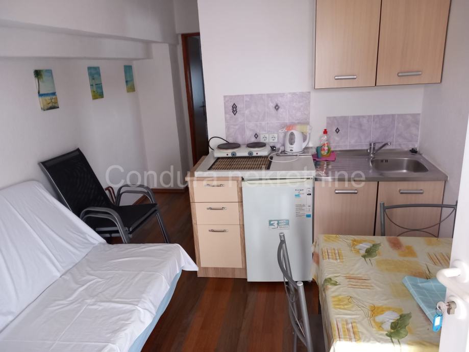 Sastoji se od prizemlja i prvog kata. U prizemlju se nalazi apartman površine 97 m2. Raspored prostorija čine dnevni boravak, kuhinja s blagovaonicom, tri spavaće sobe, dvije kupaonice, ostava i terasa. Uz njega se nalazi i studio apartman. Na katu se nalaze tri jednosobna apartmana. Prvi i drugi apartman su površine 26 m2 te se sastoje od kuhinje s blagovaonicom, jedne spavaće sobe i kupaonice. Treći apartman ima površinu od 30 m2 te se sastoji od kuhinje s blagovaonicom, jedne spavaće sobe, kupaonice i lođe.