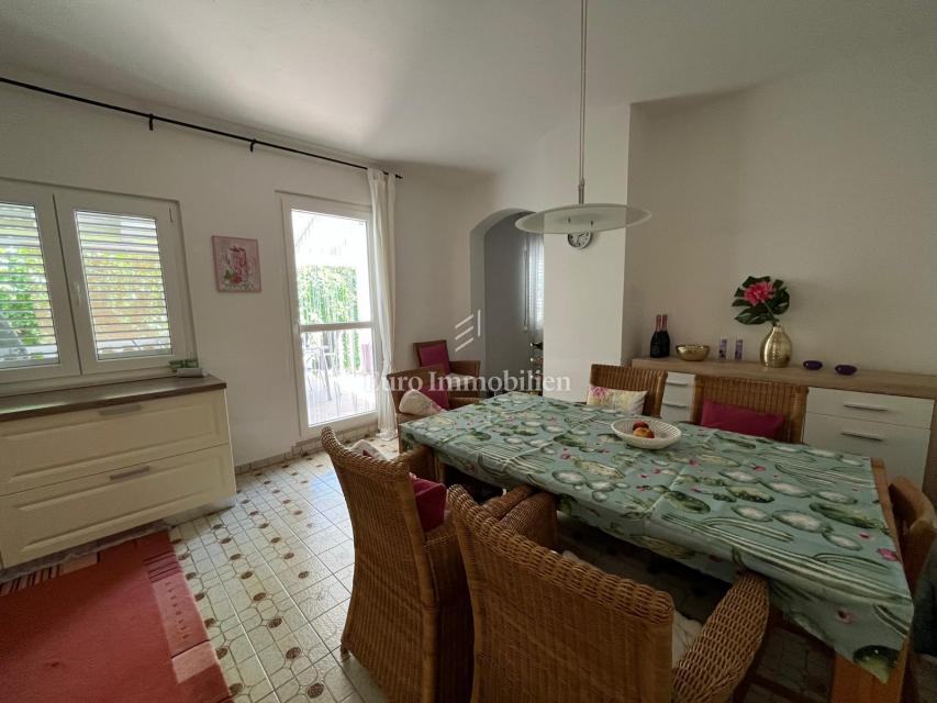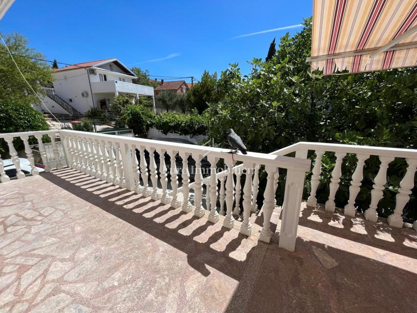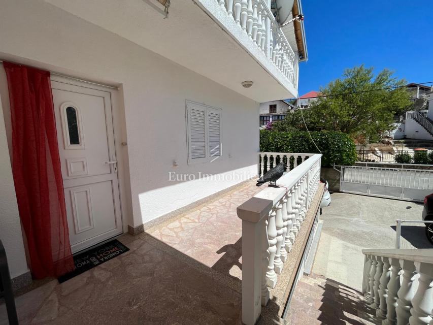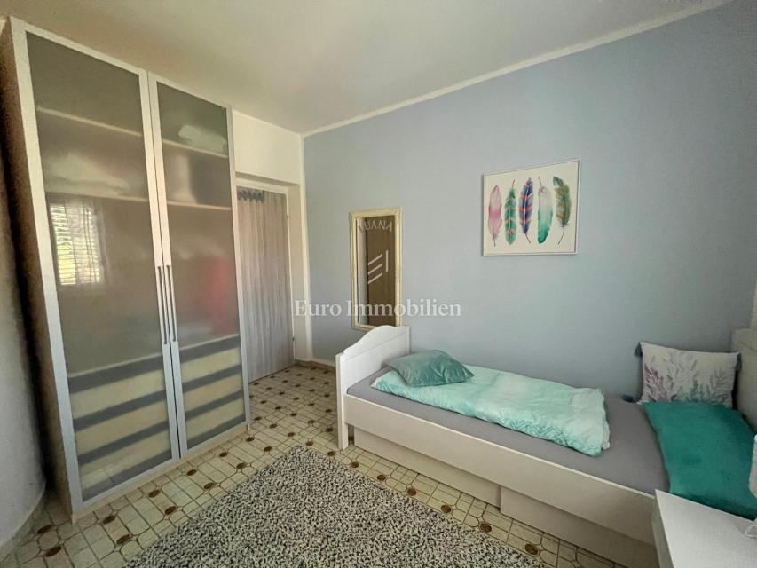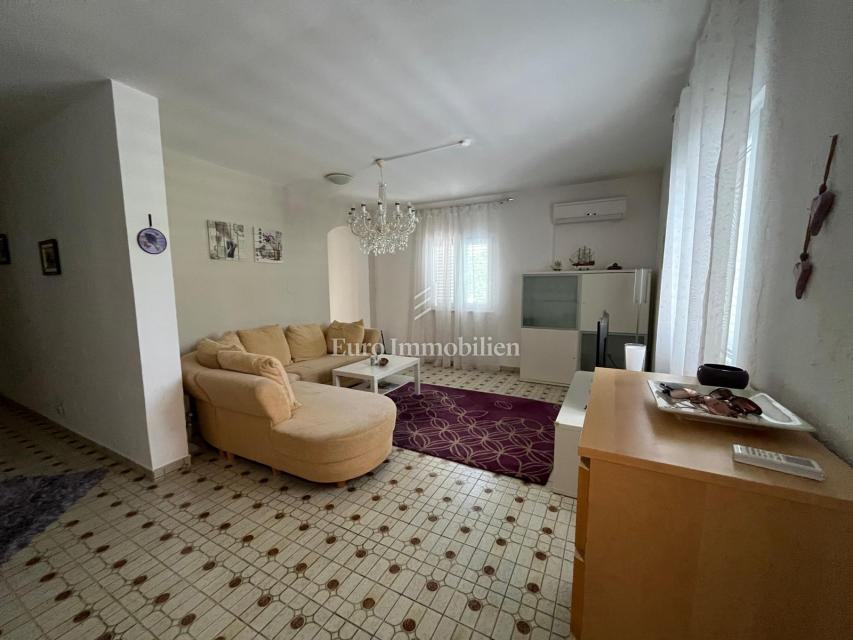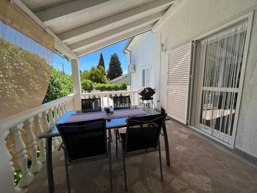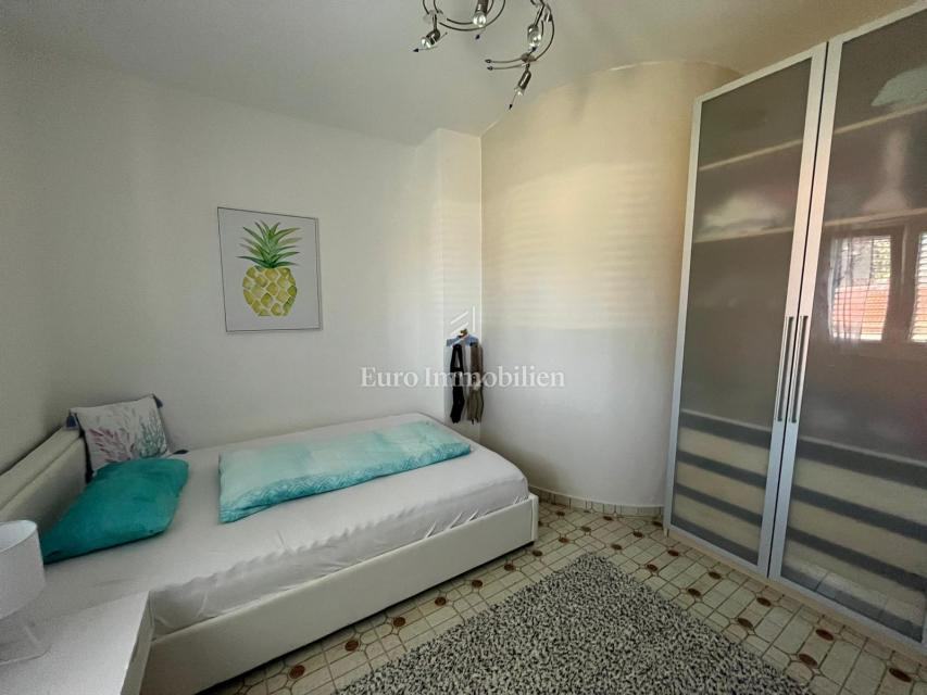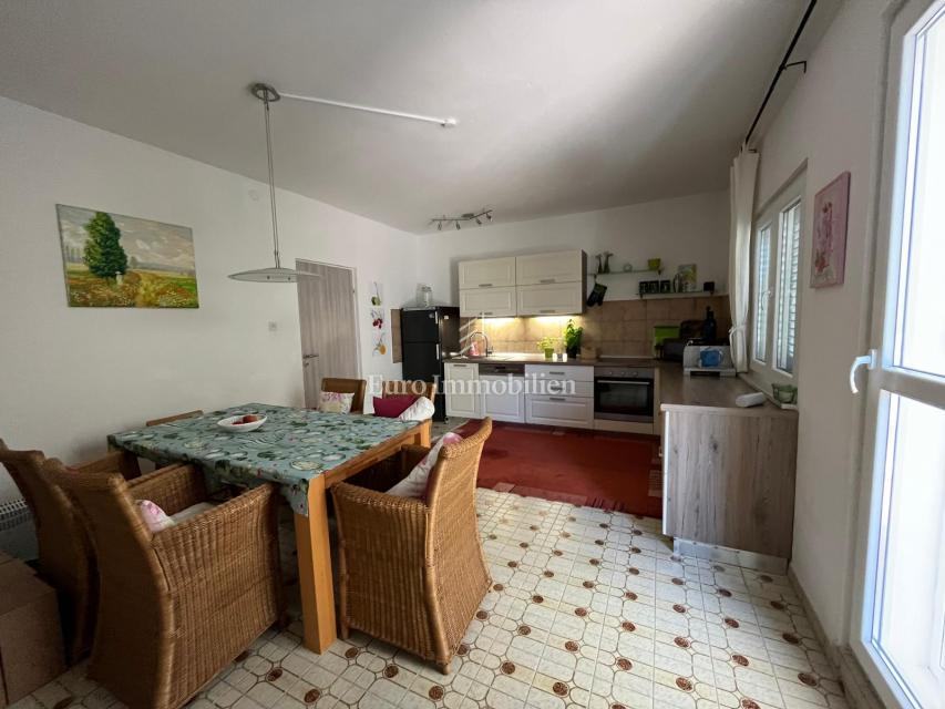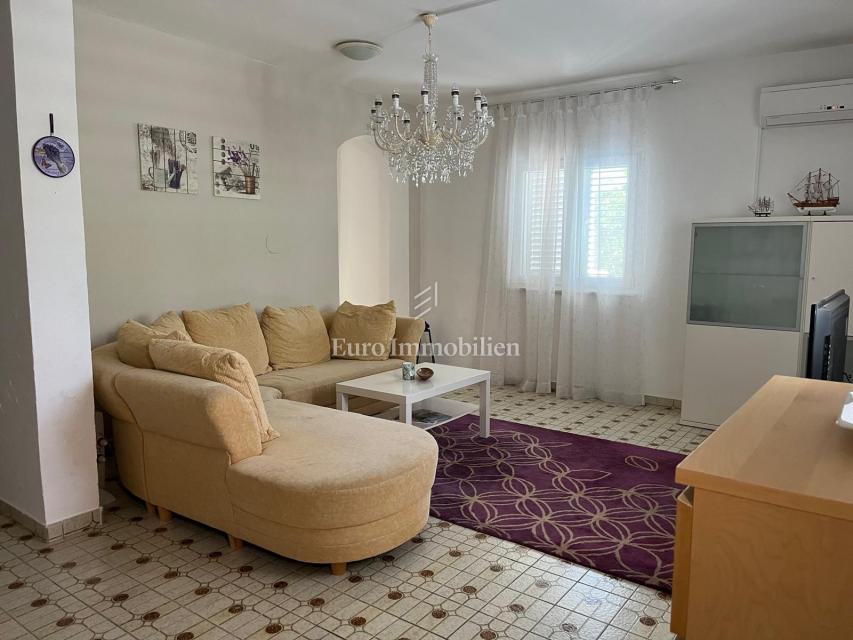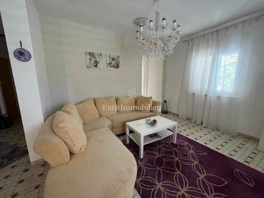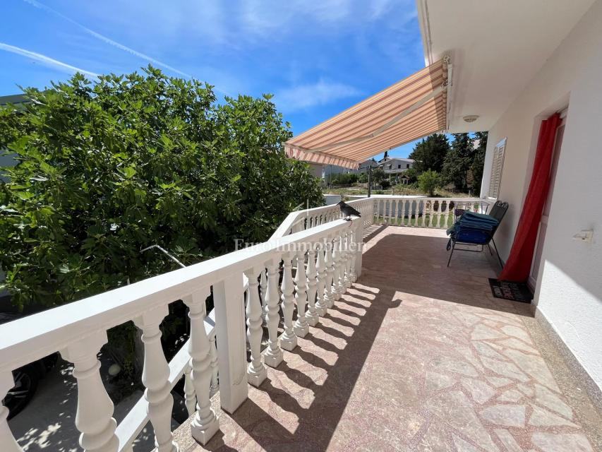 Na prodaju je apartmanska kuća udaljena 200 m od mora u Gornjem Karinu. Nekretnina se sastoji od dvije stambene jedinice koje se prostiru na prizemlje i prvi kat. Preuređena je prije dvije godine i u izvrsnom je stanju. Imanje se nalazi na parceli od 348 m² s vrtom u mediteranskom stilu s brojnim stablima.