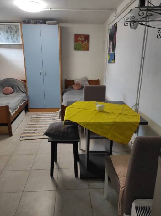 U podrumu površine 12,36 m2 nalazi se u potpunosti opremljena garsonjera, kuhinja, kupaonica te prostor za spavanje.