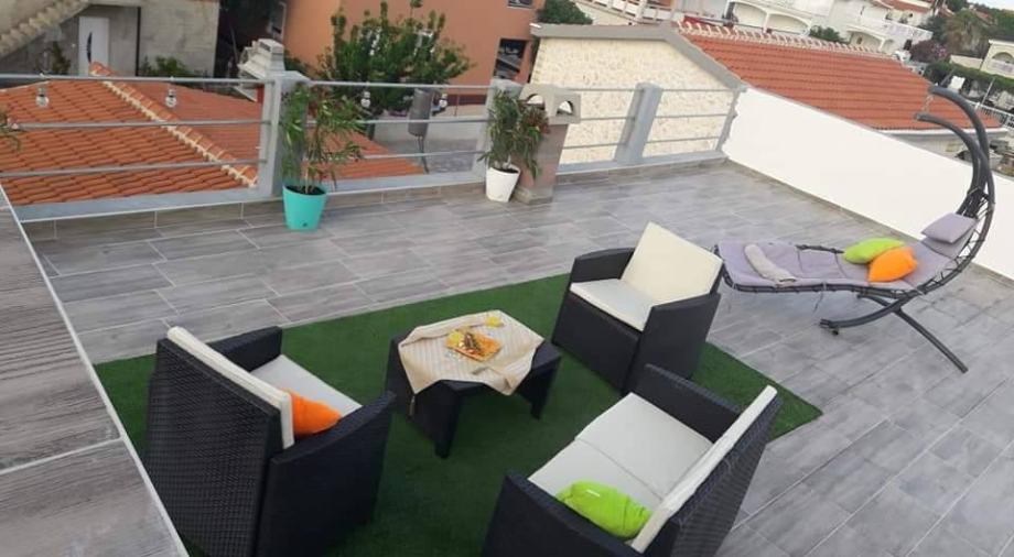 Kuća se sastoji od garsonjere i 3 odvojena apartmana, podruma te krovne terase sa djelomničnim pogledom na more.