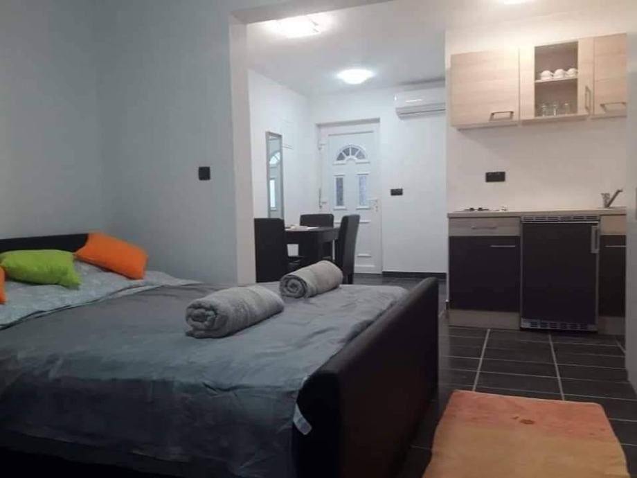 U prizemlju objekta nalazi se prostrani dvosoban apartman površine 67 m2 koji se sastoji od 2 odvojene spavaće sobe, kuhinje spojene sa dnevnim boravkom, kupaonice te terase.