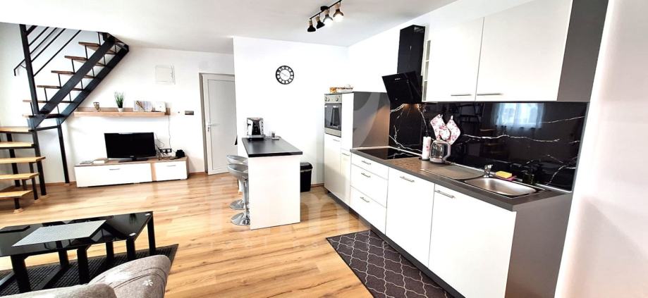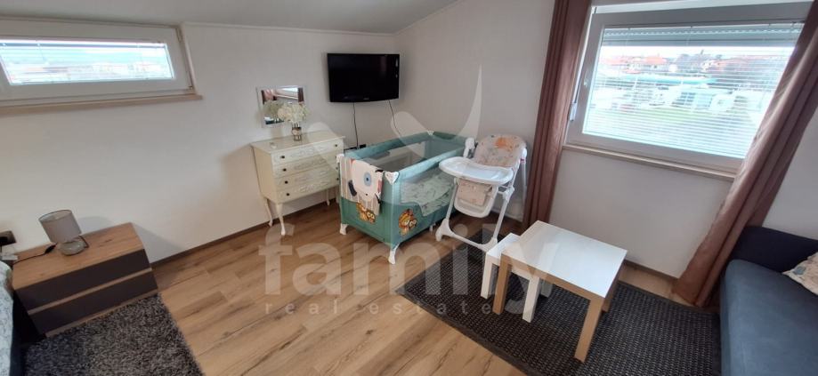 Na drugome katu se nalaze dva stana. Prvi stan je površine cca 78 m2 i dvoetažni je u potpunosti sređen i trenutno je u namjeni turističkog iznajmljivanja. Unutar njega smjestio se otvoreni prostor kojeg čini dnevni boravak, visokokvalitetna kuhinja, prostor za ručavanje sa kojeg se izlazi na terasu, a sa koje se pruža predivan pogled na Brijunsko otočje i more, kupaonica i spavaća soba. Stepenicama hrastovog drveta dolazi se do galerije u kojoj se nalazi još jedna spavaća soba i kupaonica. Duž cijele galerije je stajna visina. Sistem grijanja i hlađenja je putem tri jedinice klima uređaja (svaka spavaća soba sa svojom klimom i jedna jedinica se nalazi u dnevnom boravku). Tokom opremanja nekretnine pazilo se na svaki detalj te je luster u dnevnom boravku sa bluetooth zvučnikom i podešavanjem različitih boja svjetla, PVC stolarija dvoslojnog stakla sa 7 plinskih komora sa ALU roletama i dodatnom izolacijom.