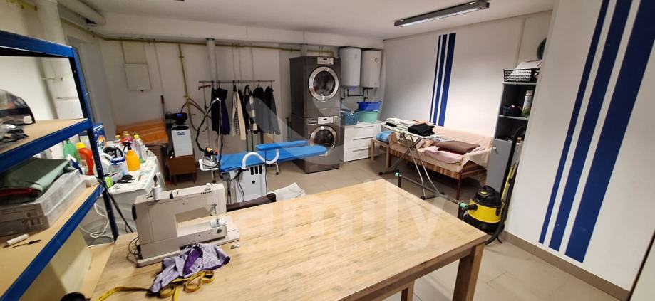 Upravo u Vodnjanu, nedaleko od centra, a na odličnoj lokaciji nalazi se ova prostrana apartmanska kuća sa sveukupno 4 stana i pomoćnim prostorijama površine 450 m2. Prostire se na 3 etaže, dok je okućnica oko 500 m2. U prizemlju se nalazi prostrana prostorija cca 40 m2 trenutne namjene prostorije za pranje i peglanje rublja, dok se pored nalazi konoba opremljena sa peći na drva i kuhinjskim dijelom, a u nastavku se nalazi stan sa sveukupno dvije spavaće sobe i kupaonicom. Unutarnje stepenice obložene dalamtinskim kamenom dovode do prvog kata i prostranog stana u roh bau fazi površine cca 120 m2 sa postavljenom PVC stolarijom i mogu se smjestiti 3 do 4 spavaće sobe, dvije do tri kupaonice, dnevni boravak sa prostorom za ručavanje i kuhinjom i postojeća prostrana terasa.