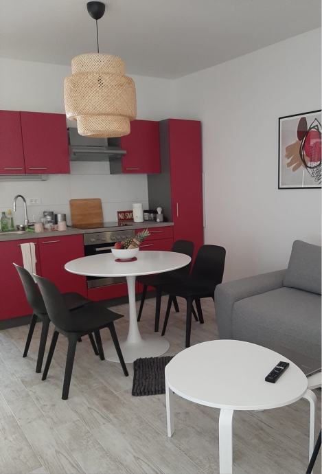 Apartman s jednom spavaćom sobom, dnevnim boravkom, kuhinjom, blagovaonicom i kupaonicom.