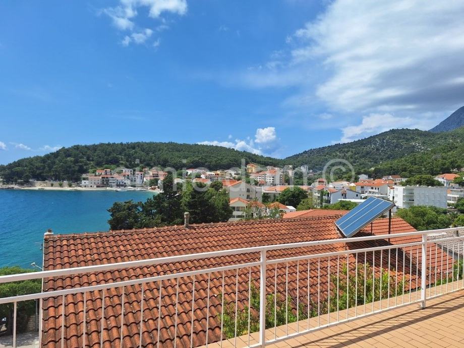 Posredujemo u prodaji vrlo šarmantne apartmanske kuće koja se nalazi na fantastičnoj lokaciji nekoliko koraka od mora u mirnom mjestu na Makarskoj Rivijeri. Stambena je površina kuće 250m2. Kuća se sastoji od dva odvojena stana te se prostire etažama prizemlja i prvog kata. Stan u prizemlju nudi četiri spavaće sobe, dvije kupaonice te kuhinju, dok onaj na katu ima dvije spavaće sobe, kuhinju, kupaonicu, odvojen toalet te ulazni prostor. Iz dnevnog se dijela izlazi na prekrasnu, vrlo veliku terasu koja pruža spektakularan pogled na more i cijelu uvalu. Kuća je okružena održavanom, popločanom okućnicom uz stabla prepoznatljivog mediteranskog raslinja. Po završetku renovacije, kuća može biti odličan izvor prihoda kroz posao iznajmljivanja s obzirom na iznimnu blizinu mora i divan pogled. Također, sadržaji poput restorana, trgovina i kafića su udaljeni nekoliko minuta šetnje. Vlasništvo uredno.