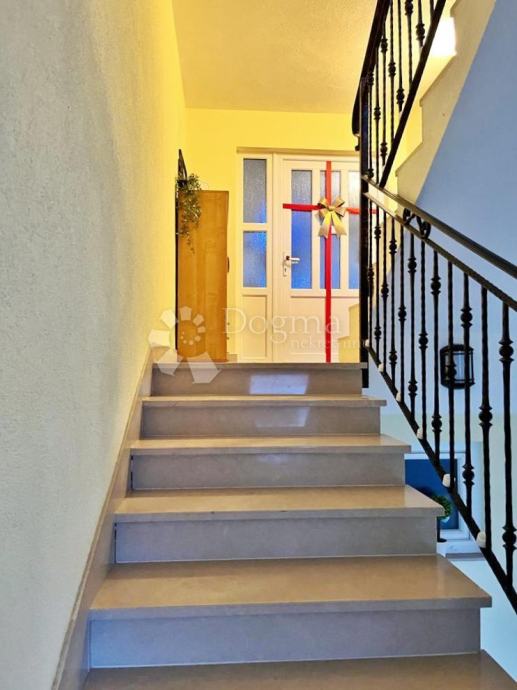 Prizemlje kuće se sastoji od 4 apartmana. Tri od njih su dvosobna, a jedan je studio apartman, svaki ima kupatilo i terasu s dvorištem. Na prvom katu nalazi se peterosoban stan s ukupne stambene površine 184m2. Na drugom katu nalazi se još jedan trosoban stan.