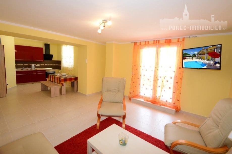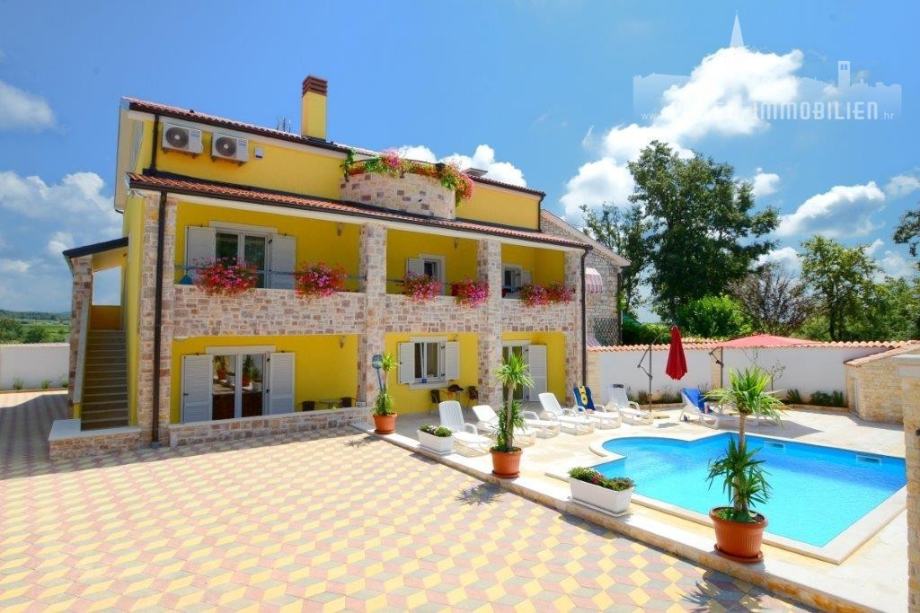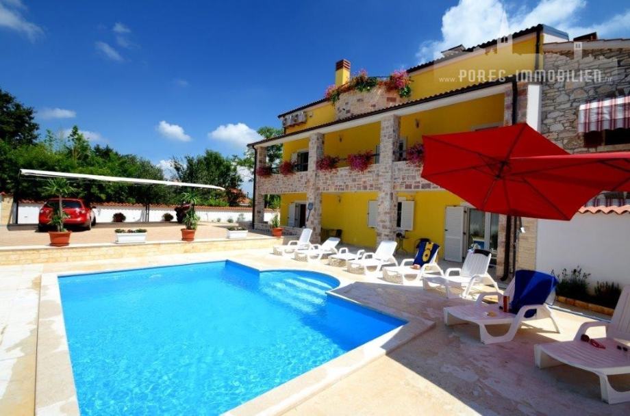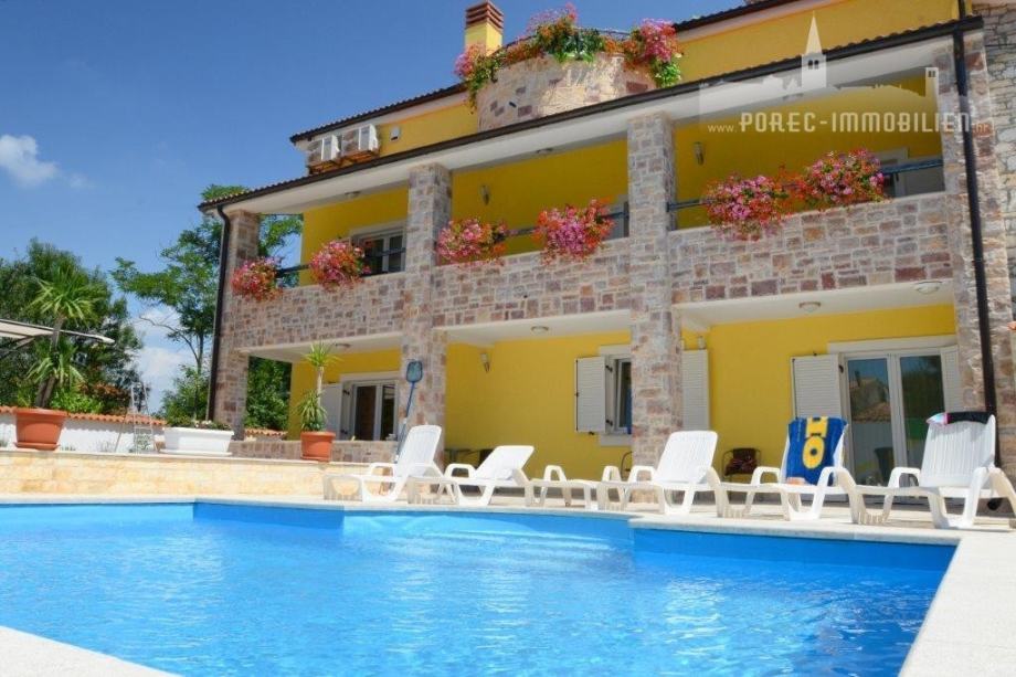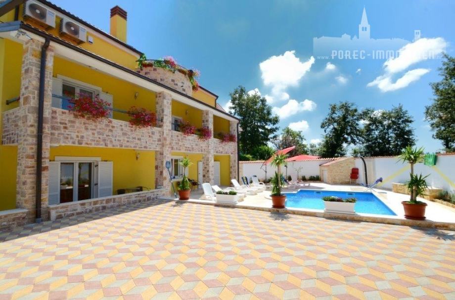 Na prodaji je prostrana apartmanska kuća sa bazenom u mirnom naselju u okolici grada Poreča.